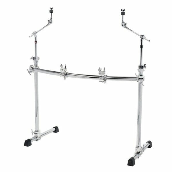 The Gibraltar Chrome Basic Curved Rack features 2×30″ vertical legs, a 46″ curved cross bar and 2 boom cymbal arms