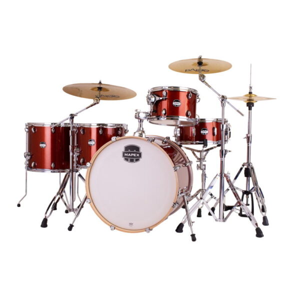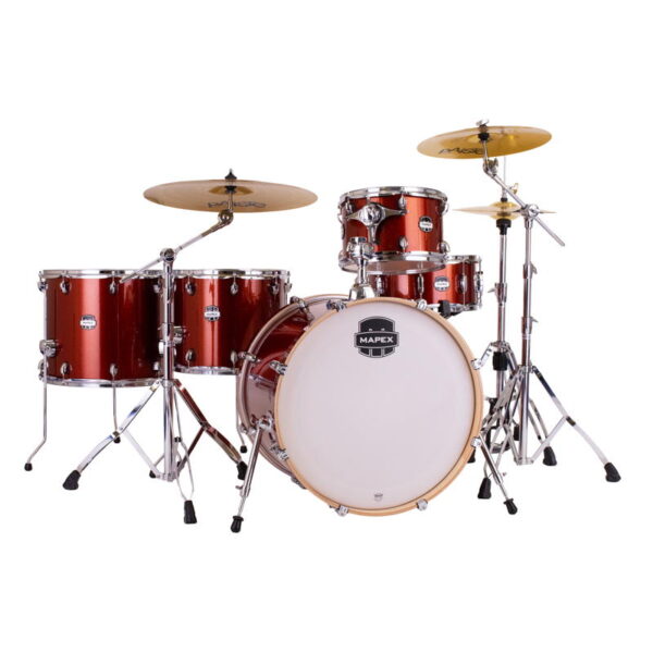Mapex Mars Birch 5-Piece 22″ Crossover Drum Kit with 600 Series Hardware and Paiste 101 Cymbal Pack – Blood Orange Sparkle