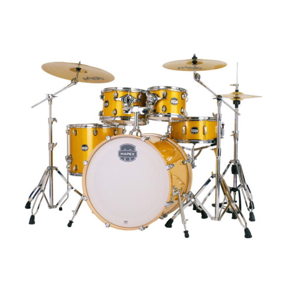 Mapex Mars Birch 5-Piece 22″ Rock Drum Kit with 600 Series Hardware and Paiste Cymbal Pack – Sunflower Sparkle