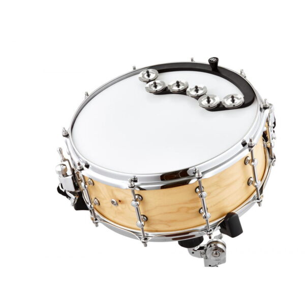 Place the Meinl backbeat Tambourines directly on your drum head to turn up the groove! The stainless steel jingles respond fully when the drum is struck, and the frame is designed to rest naturally against the inside of any standard drum hoop.