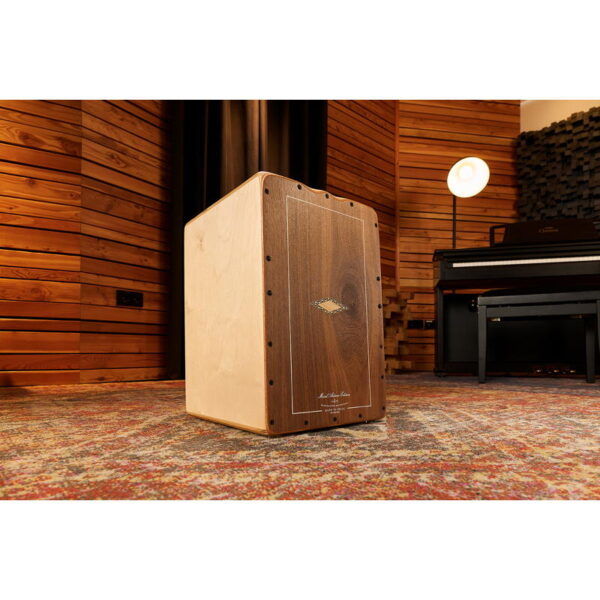 Adjustable strings and an extra thick wooden sound port ring for bass compression give the Cantina Line a wide dynamic range of highs and lows. Two sets of eight micro-coiled metal cajon strings give a snapping snare effect and are adjustable with the included tuning key. These strings are hand-wound in the style of master Cajon builder, José "Pepote" Hernández Diaz, and respond with the utmost sensitivity. The 9-Ply, 12 mm thick Baltic Birch resonating body develops the sound into a full, punchy tone that projects with clarity and warmth. A decorative wood inlay adds a touch of elegance to the overall appearance. The Cantina Line comes with a Walnut front plate. Made in Spain.