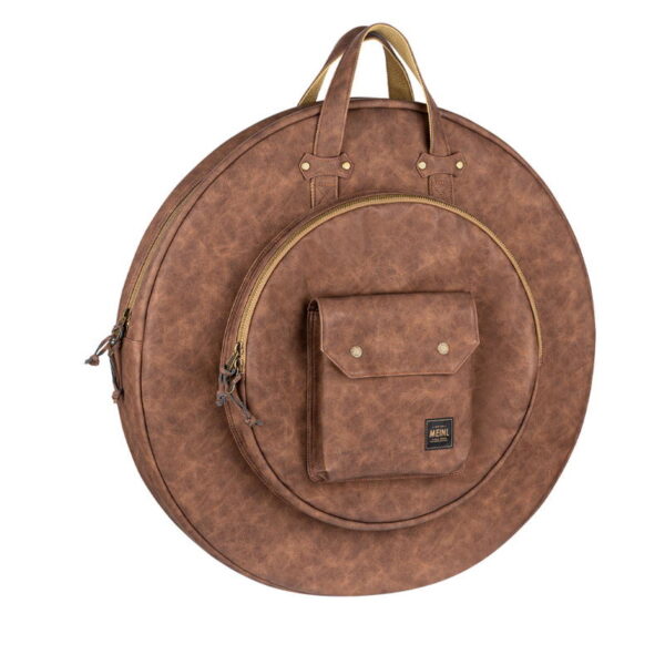 The Meinl Vintage Hyde Cymbal Bag has all the tough useability of a touring bag with classic good looks. Our ultra-durable leatherette exterior and 24-ounce cotton canvas interior maintain a lifetime of use. Inside the main compartment is plenty of room to fit 22” cymbals, and it comes with two canvas cymbal dividers to avoid metal-on-metal contact. The 15” hi-hat compartment includes one canvas divider. The exterior quick-access pocket is sized for common accessories or tools, and it snaps shut to secure your items. Two adjustable backpack straps and reinforced leatherette handles let you comfortably transport heavy loads to the gig or studio. On the bottom of the bag is an extra internal layer of padding to guard against bumps, scuffs, and minor drops. Getting into the bag is easy with the large zipper pull tabs that come with long leatherette draws. The Meinl Vintage Hyde Bags are designed for an understated and timeless style while being as practical as ever for any type of traveling drummer. Available in Black, Dark Brown, or Light Brown.