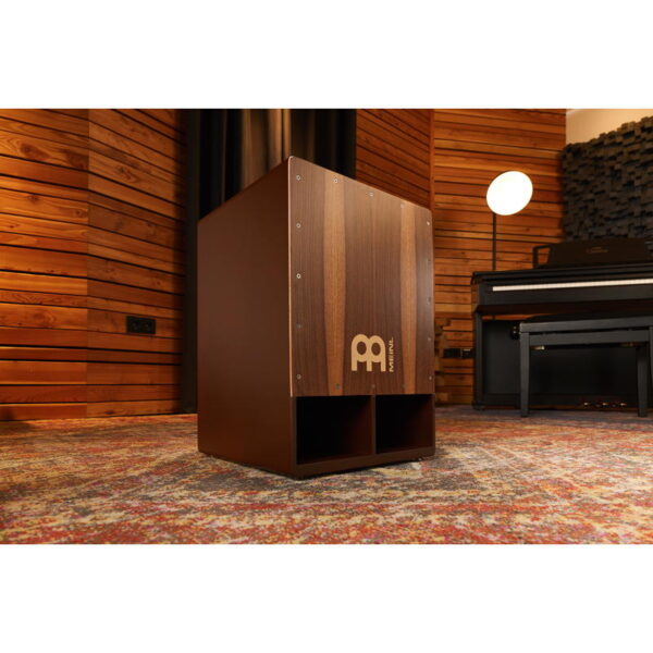 Meinl Percussion Subwoofer Cajon, Walnut – The Meinl Subwoofer Cajon features a forward projecting sound port in place of the traditional rear-facing style and an internal reflex channel.