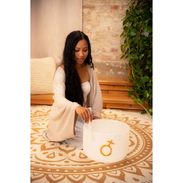 The white-frosted Meinl Sonic Energy Planetary Tuned Crystal Singing Bowls are made using the calculations of Hans Cousto (The Cosmic Octave) to match the frequencies of the sun, moon, and planets. Each one is tuned to produce the corresponding frequency of the celestial body. These white-frosted singing bowls are made of high-purity quartz creating a charming aura with their sound and design. Their long-lasting, spherical tone spreads when the singing bowl is gently tapped or rubbed so that the energy can be felt in the entire surroundings. All Crystal Singing Bowls are delivered with a silicone ring to avoid possible impact and to ensure the best resonance. You can use crystal singing bowls for various purposes: Chakra healing, meditation, sound therapy, yoga, improving your home Fengshui, adjusting your emotional state, or even room decorating.