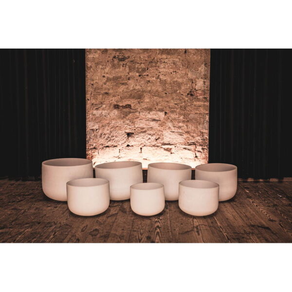 Meinl Sonic Energy White-Frosted Crystal Singing Bowls Set 7 pcs – B4/A4/G4/F4/E4/D4/C4/432 Hz – The white-frosted Meinl Sonic Energy Crystal Singing Bowls made of high-purity quartz create a very pleasant aura with their sound and design.