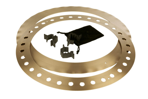 Designed by Jojo Mayer, this dual-ring effects device offers incredible versatility and a massive palette of sound. Made from premium B20 Bronze hi-hats, the top flotation ring is punched with 32 holes for lightness and lift, while the heavier bottom ring is designed with X-Celerator Air-Wave lip to minimize contact with the snare head. So you can use it without changing the sound of your snare, allowing you to dial in as much or as little effect as you want. The sound possibilities are endless!