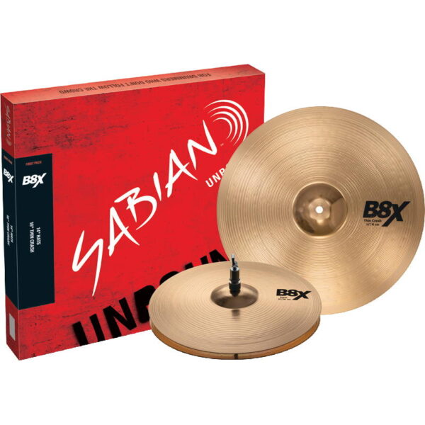 Sonically matched in the Sabian Vault, the Sabian B8 First Pack includes 14″ B8 Hi-Hats and a 16″ B8 Crash. A perfect first set for the serious and discerning beginner. Precision formed, hammered and lathed for pure, tonally tight sounds, B8 is the bright, cutting sound of pure Bronze at a low price that makes your first move into this precious metal an easy one.